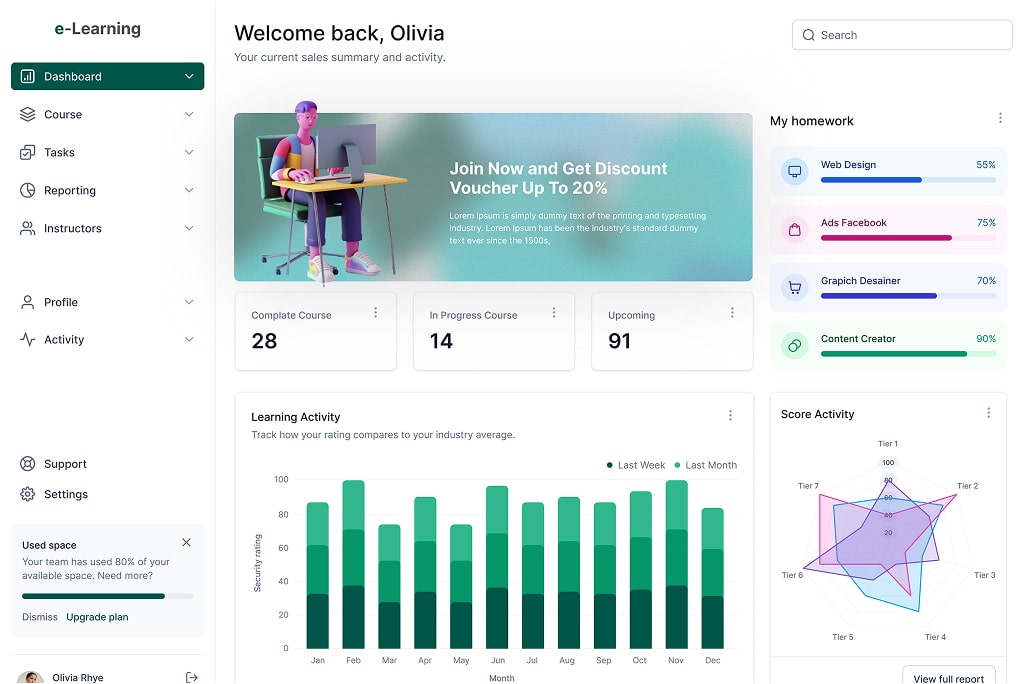 Use course analytics to make smarter decisions and build customizable dashboards that spotlight your most important course data.